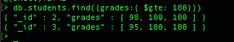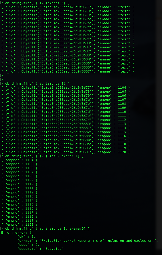 > db.thing.find( { }, {empno: 1, ename:0} )
