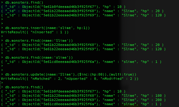db.monsters.findAndModify({ query: { name: "Dragon" }, update: { $inc: { att: 1000 } ,$set :{"name":"Dragon","hp":4000,"att":1000}}, upsert: true, new : true }) |