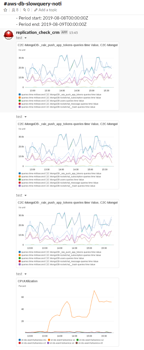 -Slowquery 가 발생해야 생성이 되므로 Lamdba 까지 수정이 완료 되었다면 제대로 들어 오는지 체크를 위해 DB에서 select sleep(30); 으로 슬로우 쿼리 생성 진행 - Lamdba 가 호출 되어서 진행 되었는지 Cloudwatch 통해서 확인 가능(수정한 Lamdba 로그가 생성 되었는지 체크도 가능